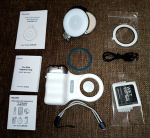 Incluye el agarre, anillo magnético, luz de relleno, batería y manual de uso. Todo lo necesario para comenzar a capturar.